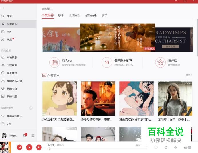 首先要选择一个上传作品的平台,在此我们以“网易云音乐”为例。首先打开电脑版网易云,在左边的服务中找到“我的音乐云盘”。
