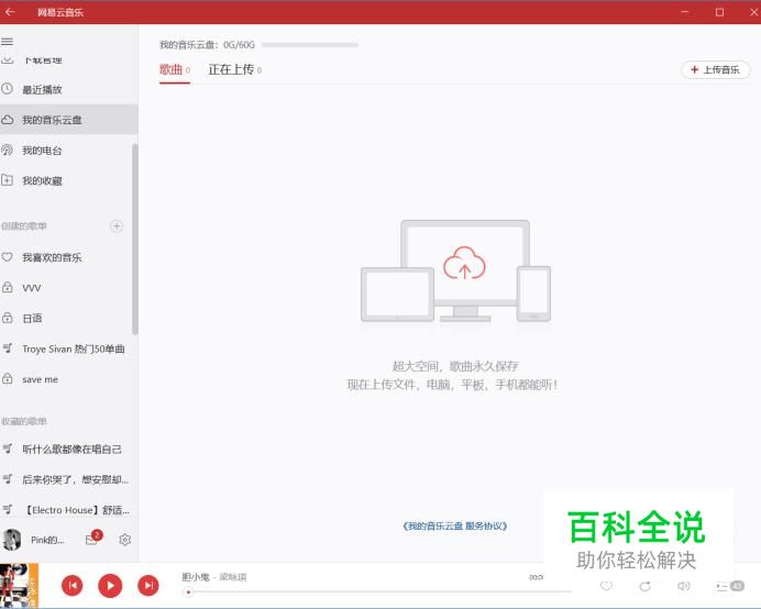 在上传成功之后,即可在我的上传中看到上传作品。大家再上传作品之前,可以先阅读网易云的云盘服务协议再选择是否上传。