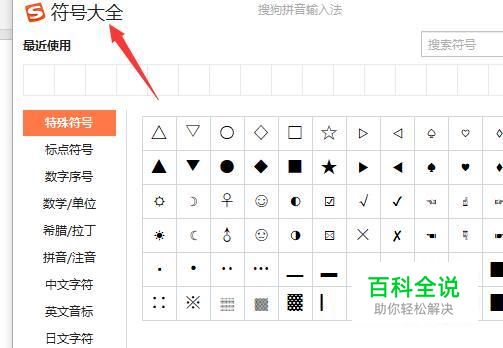 然后点击第一个特殊符号,就在左侧的第一个,然后直接点击,右侧会出现一些符号。