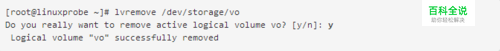 将LV逻辑卷设备删除,需要手工输入y来确认操作: