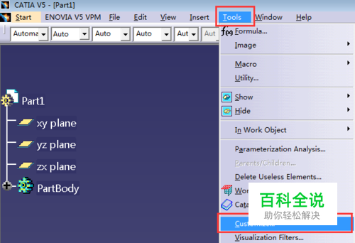 点击菜单栏的“Tools(工具)”-“Customize(用户定义)”