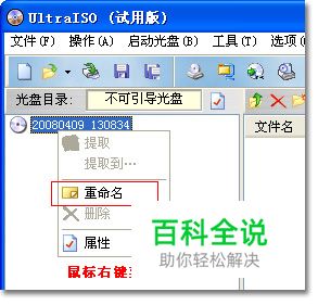 步骤1:启动UltraISO,如图1所示,UltraISO默认为新建一空ISO文档,类似于Word之类的软件。参照图2所示,首先为文档取个名字! <图2-UltraISO实例教程-取名>