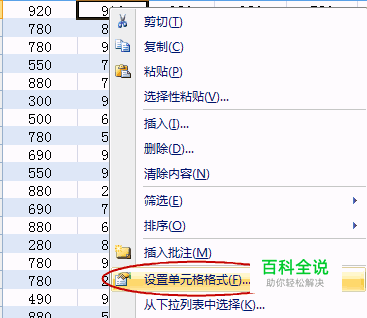 先选定任意一个单元格,点 右键,选设置单元格格式。