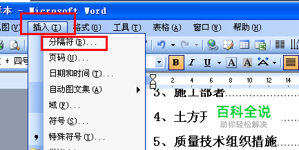 点击菜单栏的“插入->分隔符”,在弹出的窗口上选择“分节符类型”里面的“连续”