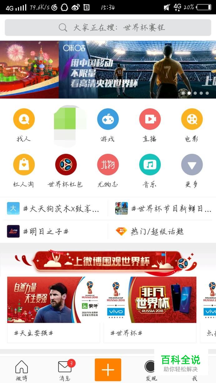 首先打开微博这个app,如图1所示。进入微博会看到一个新的界面,如图2所示啊。