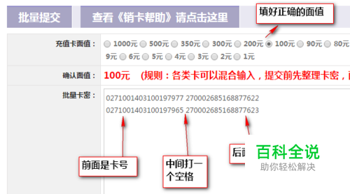 移动、联通、电信话费充值卡密 规格为:移动(规则:卡号17位,密码18位,联通(规则:卡号15位,密码19位),电信 (规则:卡号19位,密码18位)