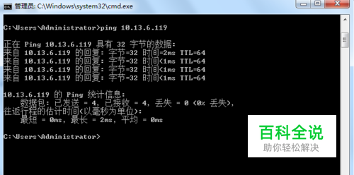 2.使用方式图解 ping命令的使用很简单,在命令控制行中键人“ping+空格++IP"。就会显示此IP地址的响应时间等信息,以显示是否连接。 ping命令既可以用来ping自己的IP地址检查网络状况。又可以用来ping网络中其他计算机的IP地址,比如要传文件给网络中其他计算机之前,可以用ping命令测试其他计算机是否开机或者网络是否畅通,如下图所示。