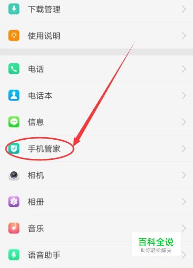 进入手机设置之后,找到手机管家,点击并进入,如图所示。