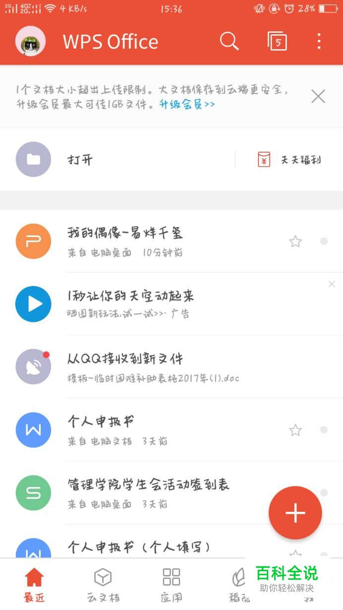 首先打开手机版WPS软件,在首页选择想要改名的文件,点击文件旁边的小圆点即可。