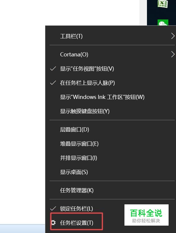 首先,我们右击我们电脑右边的任务栏,弹出的界面,我们点击设置任务栏;
