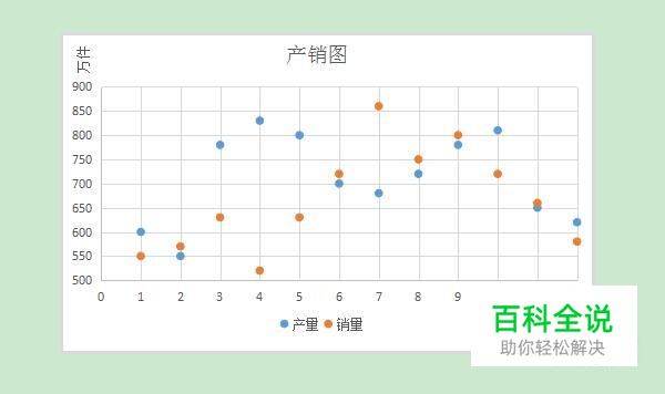 双击纵坐标,修改最小值,由于产量和销量数据均大于500,所以将最小值改为500。