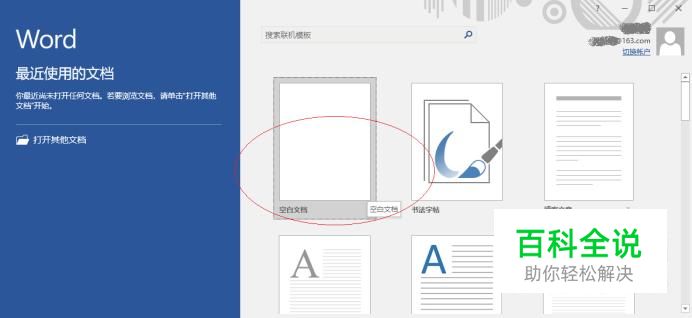 启动Word 2016文字处理应用软件,如图所示点击屏幕右侧新建空白文档。