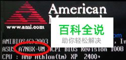2、查看开机画面请重新开机!! 当您看到ASUS xxxx ACPI BIOS Revision" 时请按下"Pause/Break" 键 例如::A7N8X-VM 即代表主板 如果找不到主板的包装和说明资料,你可以在电脑启动进行自检时看到关于主板和BIOS的信息。具体方法是当系统检测内存时按下键盘上的Pause/Break键,这样系统的检测过程就会暂停。通常这时屏幕上的第一行(或前两行)为BIOS的相关信息,能够查知BIOS的出品公司名称、主板型号、主板所用的芯片组及所用的BIOS当前版本;左图是捷波主板的开机画面,从上面可知该主板使用的是AWARD的BIOS,BIOS版本为AV18S981。 此时,从屏幕的最后一行也可以得知机器的相关信息,如“03/03/2000-694X-686A-2A6LJPA9C-00”,“03/03/2000”代表BIOS更新的日期;“694X”代表该主板所使用的芯片组;“2A6LJPA9C”就是所谓的BIOS-ID。但有的主板因为使用日久或主板标注不清或无法识别,使用上述方法并无法得知,这时可以用相应的测试软件来测出电脑的主板类型。利用BIOS-ID可以获得主板的芯片组及BIOS的厂家,关于BIOS-ID,请参考本站的BIOS-ID部分,那里有详尽的BIOS代码介绍。