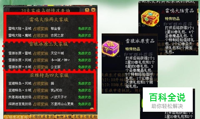 家族战~~魔域里面最多战争的地方~!~ 家族战从出现到现在历经那么多年,一路风雨走过。。。。。。 但这么多年一直都没怎么改变,家族战必须要改变,必须要创新,否则将会走进死胡同。。。 跟很多玩家聊过,他们对家族都有自己的一些看法及想法,希望家族战能改变一下~!~ 在谈家族战未来的走向之前,我们先了解一下目前家族的现状!!! 以上分别是雷鸣大陆的家族(2个)、冰宫的家族(3个)、海岛的家族(4个) 合计是9个家族! 其实奖励大家都看得出来,雷鸣大陆的奖励是最丰富的,然后就到冰宫再到海岛~~~ 雷鸣大陆的奖励:3个12星XO、4个魔晶、5个特球、2个天使幻兽礼包、2个骑宠幻兽礼包 冰宫的奖励:2个12星XO、1个8星O、3个魔晶、5个特球、1个天使幻兽礼包、1个骑宠幻兽礼包 海岛的奖励:1个12星XO、2个8星O、3个魔晶、3个特球、1个天使幻兽礼包、1个骑宠幻兽礼包 以上分别是沼泽的家族(5个)、戈壁的家族(6个) 沼泽的奖励:2个8星O、3个魔晶、2个特球、1个天使幻兽礼包、1个骑宠幻兽礼包 戈壁的奖励:2个8星O、2个魔晶、1个特球、1个天使幻兽礼包、1个骑宠幻兽礼包 从以上的奖励可以看出,奖励基本都是XO礼包、O型幻兽礼包、特球、幻兽礼包!除了以上的奖励还有一些连续占领奖励:装备、技能书、雷水、三水等~ 这些奖励经历这么多年了,在新区也许能起到一定的诱惑让玩家去争夺,但在大部分的老区,这些奖励已经跟不上魔域发展的步伐了,所以跟很多玩家沟通过,他们对于奖励这一块的有一些看法,现在也拿出来跟大家分享分享: 1、幻兽礼包能否增加25*XO礼包,毕竟现在很多幻兽已经是需求25*XO礼包了,并且如果可以最好能增加一下30*神XO的碎片奖励!这样才能刺激更多玩家去争夺; 2、幻兽礼包的天使跟骑宠,能否更换成幻兽卡,让玩家自由选择最后的幻兽;否则现在这些天使骑宠礼包对于很多玩家来说,特别在老区,简直没用! 3、连续奖励的装备能否增加血族、亡灵、异能等装备,而不是局限于战士法师装备! 4、关于技能书,随着更多职业的开放,血族跟亡灵大受玩家喜爱,因此技能书这块也是否能增加血族与亡灵的选择!!! 5、连续奖励是否可以增加神的一些用品或则其他用品!而不是局限于现在的雷水及三水!! 游戏在于竞争,当东西没有吸引力大家还怎么去竞争呢!?所以强烈建议游戏策划方面能考虑考虑! 对于家族战的挑战申请费用,跟小记沟通的一些玩家也提出了自己的想法,在说他们的想法之前,小记也先带大家看看各大陆的家族挑战费用: 1、雷鸣大陆挑战费用:100万金币! 2、冰宫:80万金币 3、海岛:60万金币 4、沼泽:40万金币5、绿洲:20万金币! 对于家族的挑战费用,很多玩家都觉得金币太便宜了!应该对于挑战费用作出调整!! 1、用金币挑家族,胜利后按照目前的奖励不变! 2、增加魔石挑战家族,胜利后可以获得魔石奖励及其他一些新增加的道具及物品!!! 以上是小记跟很多玩家沟通后的反馈!希望大家也能发表一下自己的意见!!! 谢谢!!