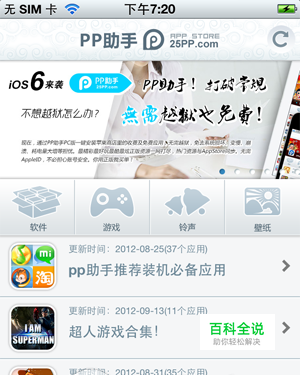 先确保设备上已越狱 且安装了pp助手ios版, 打开PP助手ios版