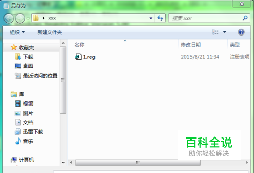 将此文本保存到一个文本文件中,然后文本文件另存为1.reg 保存类型:所有文件