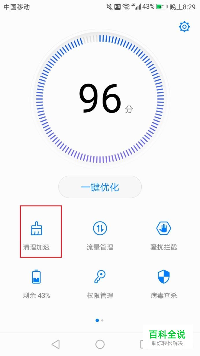 还可以点击清理加速,可以看到在清理加速的过程。