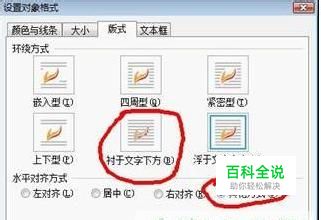 2、版式,环绕方式---衬于文字下方,水平对齐方式------其他方式
