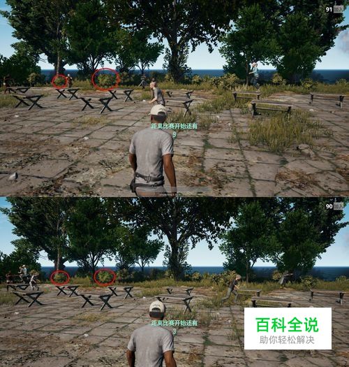 七、树木、可视距离 这两个画面设置是网上普遍认为要调最低的,为什么要把这两个放一起说,因为两个的效果真的很相近,这个让我们来先看图 可以看到,图2调高了可视距离,相比图1,看到了最远处的一座塔。图3调高了树木,相比图1,远处山头多了很多树。图4调高了可视距离和树木,相比图1,远处的塔楼和树木都可见。有人要说了,这不是妥妥的坑爹吗,那么多树不是挡着我看人了吗?网上的说法是,人物不管多远都会读取,所以调低这两个设置,远处的人物不会被树遮挡,方便看到敌人。为了验证这个说法,尼克又做了一个测试,如图,我的队友躲在了一棵树后面,这棵树距离大约1000米,这是通过画面设置刚好能让树木消失的起步距离 然而我们调低树木和可视距离,可以看见树不见了,然而即使在八倍镜下,人物仍然连一个像素都没有,更别提肉眼观察了 总结来看,这个设置正常情形下对游戏性基本无影响,即使隐去远处的树木、建筑,由于距离过远,你仍然无法看到敌人的踪影,除非有十五倍镜,也许有一定帮助,但看见就很难了,想射中目标就更难了。 帧数提升: 从极致到最低,大约只能提升2%的帧率 建议设置: 对游戏性基本无影响,建议直接调最低,追求游戏观感的大佬可以根据需求调高,或者可以调中高看看远处地形、建筑