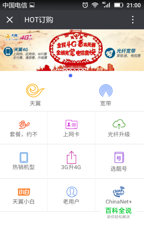 微信添加中国电信福建网厅 点击HOT-> ChinaNet+ 可以了解到相关资讯