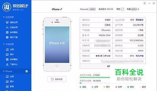 首先我们先下载刷机软件,这里我们用爱思刷机助手。下载好之后安装连接需要连接系统损坏的苹果手机。这个时候会读取到你手机的参数。