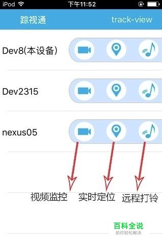 点击摄像头图标就可以“视频监控”,点击中间座标标志为“实时定位”,点击最左边的音符图标为“远程打铃”功能。