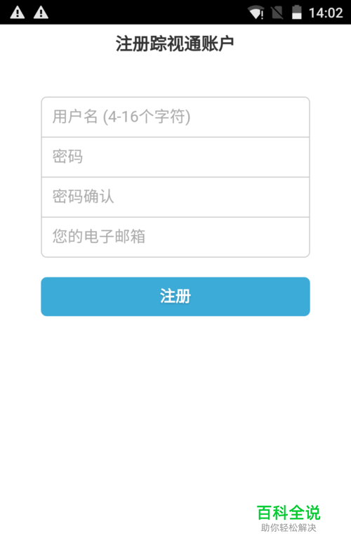注册踪视通帐户需要填写“用户名”-“密码”-“密码确认”-“您的电子邮箱”,然后点击“注册“,“显示注册成功!”(国内的任何电子邮箱都可以注册)。
