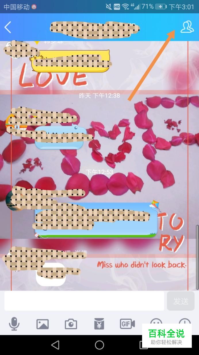 然后进入qq群聊天界面,点击右上角的人头像,如下图。