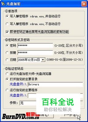 将特定文件夹设置为隐藏属性后,即使用户自己也无法在刻录的光盘中看到隐藏的目录。其实可以通过为光盘加密码使用户自己能正常查看该文件夹的内容,使用“光盘加密大师”设置光盘密码的步骤如下所述: