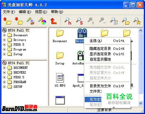 第1步,运行“光盘加密大师”,并打开ISO文件。在程序主窗口中右键单击已经设置隐藏属性的文件夹,选择“定为主要目录”命令,如图2009020455所示。 图2009020455 定为主要目录