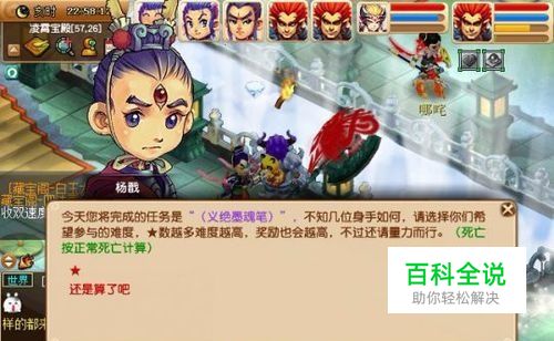 然后江湖游侠出现,也要来看病。 但是凑巧碰到了患病的富豪,对方不肯让队。 你过去劝说,大打出手,主怪会使用金钱雨,全体-1气血,效果为本方1只或多只BB逃跑,当BB当前喊“有好多钱啊,快去捡!”时,等到他出手就会跑了。还会使用“贿赂”,效果为反间本方一员;左边虾兵LG,会群秒,天兵LB,会浪涌;右边虾兵MW,会单秒,天兵ST,没机会出手。 建议先击杀两个物理怪,再清理主。