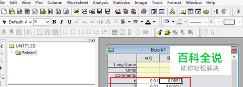 打开 Origin ,输入待处理的数据,并绘制出数据的散点图。