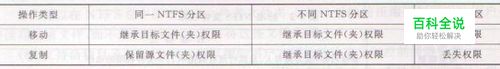 5)移动和复制操作对权限的影响 移动和复制操作涉及3种情况,同一 NTFS分区、不同NTFS分区、FAT分区,见下表。