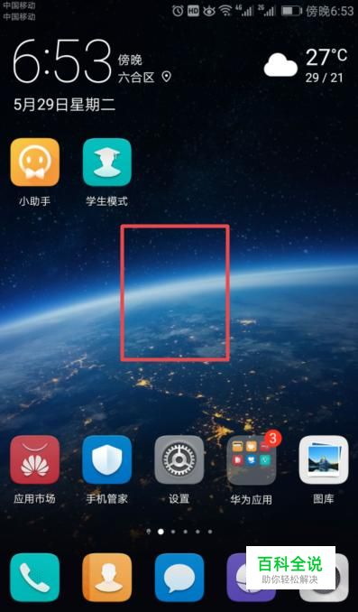 首先,我们打开我们的手机,然后长按手机桌面的空白处;