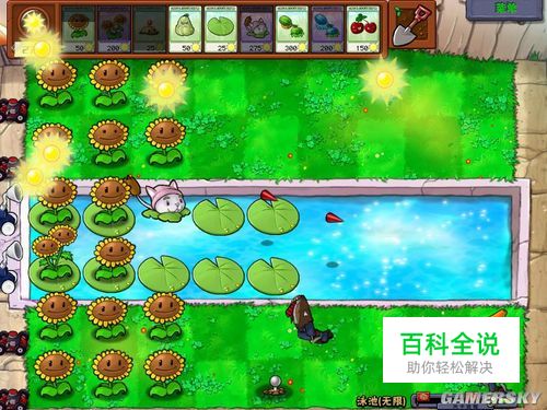 在没有撑杆僵尸、舞王僵尸、冰车时,最好也没有红眼大僵尸时,可以铲掉地刺种上向日葵。没有海豚的话第八列水路也可以铲掉高坚果种向日葵哈。总之没有威胁的时候螚种就种。