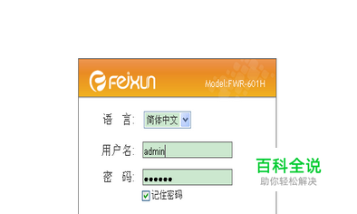 斐迅FWR-601H路由器WAN连接猫后,LAN连接电脑,打开浏览器。地址栏输入192.168.1.1 ,进入登陆。