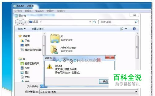 有些朋友怕别人乱修改自己有用的文件,有时会把文件设置为只读——那在修改时就不能保存了!(这里是使用文本文件讲解,其它文件方法是一样的。)如图