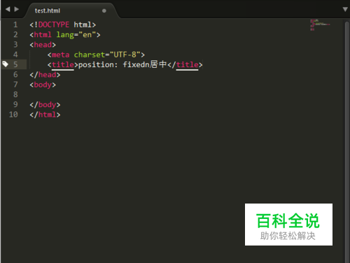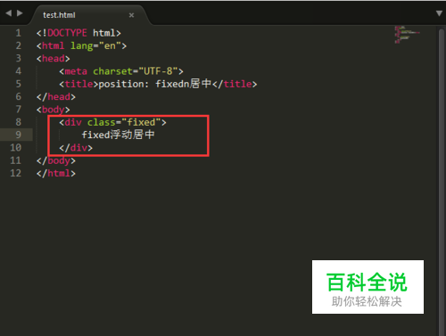 在html文件上找<body>标签,在<body>标签中创建<div>标签并设置class类: <div class="fixed"> fixed浮动居中 </div> 如图: