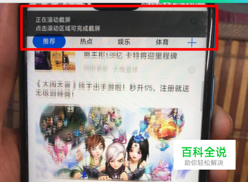 点击后,页面上方会显示正在滚动截屏。这时,界面会自动滚动。当滚动到我们需要截取的图片长度时,我们点击屏幕。