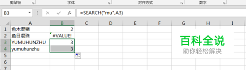 往下填充公式,得到结果,如果查找到则返回位置数字,查找不到返回#VALUE!错误,如下图所示: