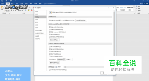 然后单击上方“文件”,点击“选项”,选择“校对”。
