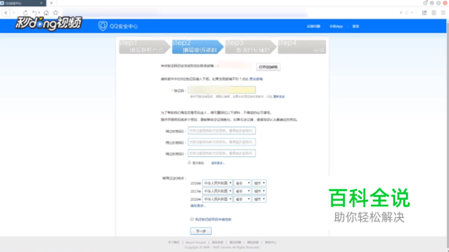 填写账号当前的密码,防护资料,点击“下一步”。