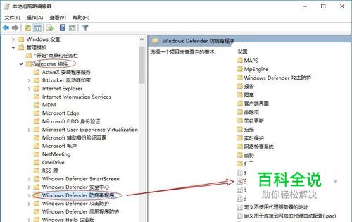 在打开的组策略窗口中,依次展开计算机配置>管理模板>Windows组件,选择【windows组件】中的windows Defender 防病毒程序