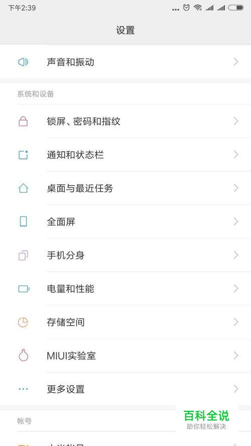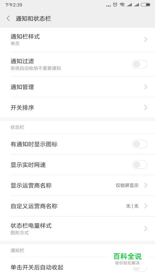 第二,在设置内,找到“通知与状态”按钮,点击进入选项