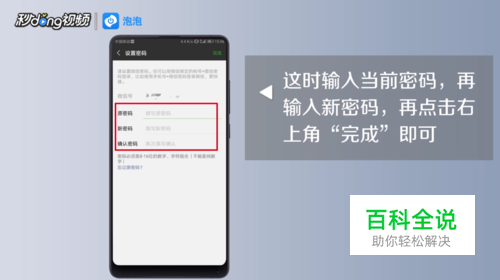 这时输入当前密码,再输入新密码,再点击右上角的“完成”即可。