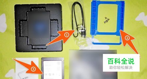 在安装固态硬盘之前,先把与固态硬盘一起配送的所有东西都拿出来;比较重要的就是固态硬盘主体、固态硬盘安装支架和螺丝、还有数据线这三个。
