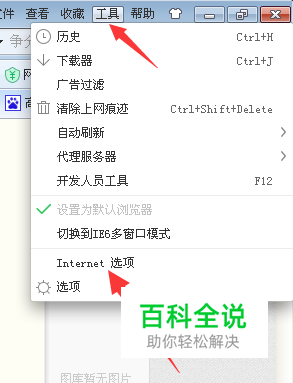 接着,当弹出要手机验证注册时,这里我们在浏览器中找到并点击打开“工具”,并点击它选项下的“Internet 选项”。