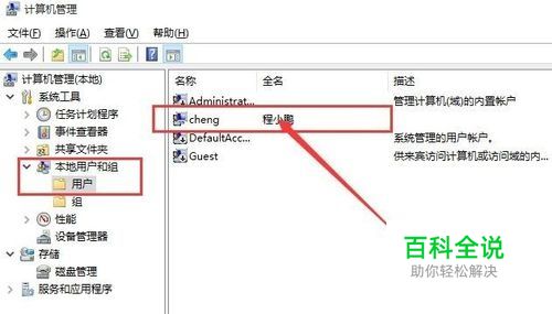 打开计算机管理界面之后,在管理页面左侧点击选择" 本地用户和组",然后在本地用户和组中双击选择“ 用户”选项,打开用户选项。