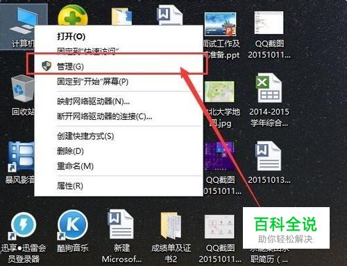 首先,请大家对着电脑系统桌面的计算机图标击右键,然后在右键菜单中选择“ 管理”选项。