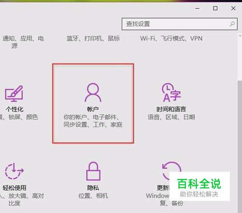 在系统设置页面中,点击页面中的“ 账户”选项,打开Win10系统账户设置页面,在该页面中即可查看到当前登录的Microsoft账户。